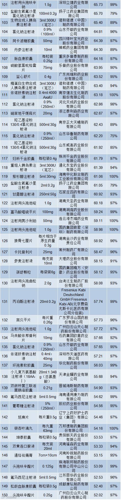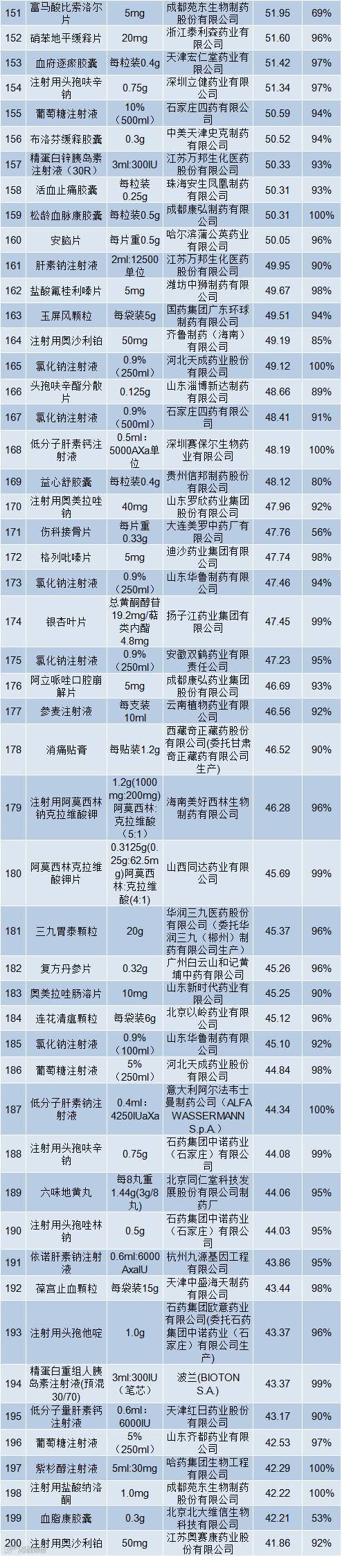附:河北5月基药采购金额前200品种