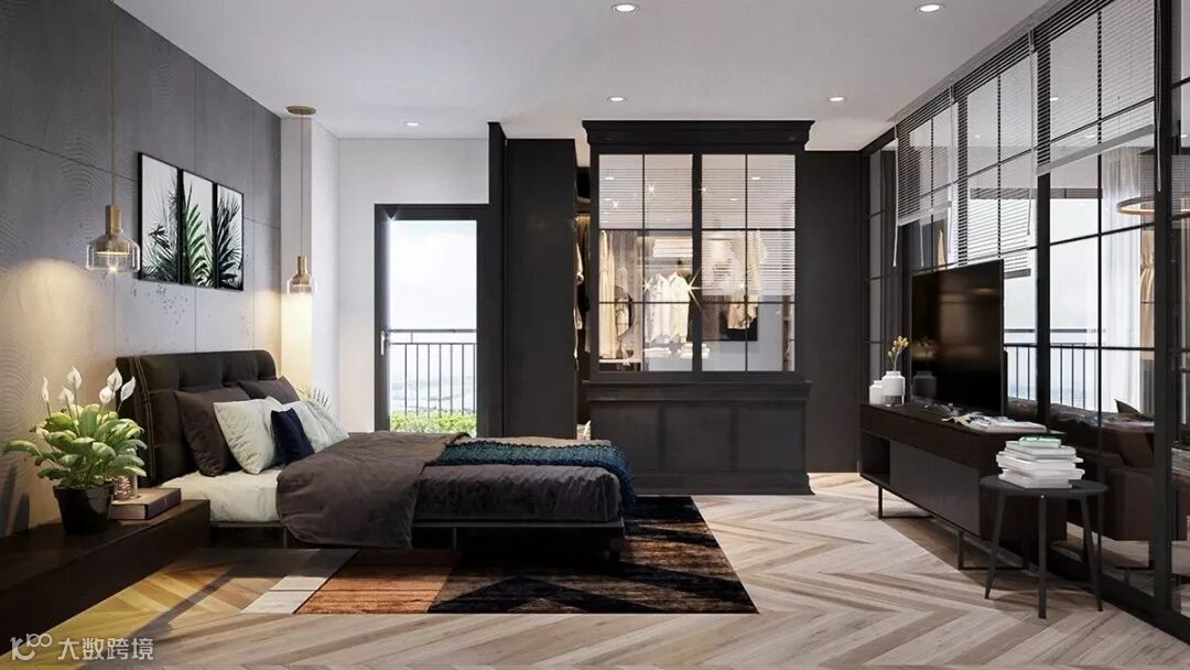 通透性衣柜是现下比较流行的衣柜设计方案,通透性衣柜可以让居住者更加便捷,更加直观的找到自己需要的衣物,方便居住者的日常实际需求。且通透的玻璃可以让整个卧室空间看起来更加大气。