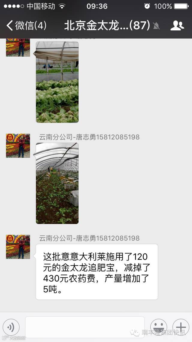 瑞丰隆集团快讯 小编把今天的快讯定义为发“菜”(财)日, 上一篇刚介绍完北方的大白菜,这篇说说云南使用金太龙追肥宝的意大利生菜。金太龙追肥宝富含氨基酸等微量元素,可以促使意大利生菜等叶菜类生长及叶色转绿,叶片肥厚。从下面没采摘的第一张图就可以看到:叶片铺满了整个地面,增产增收是肯定了!而且云南市场部的工作人员还给我们算了笔账,增产增收的同时就意味着:使用金太龙,生菜真的生财!