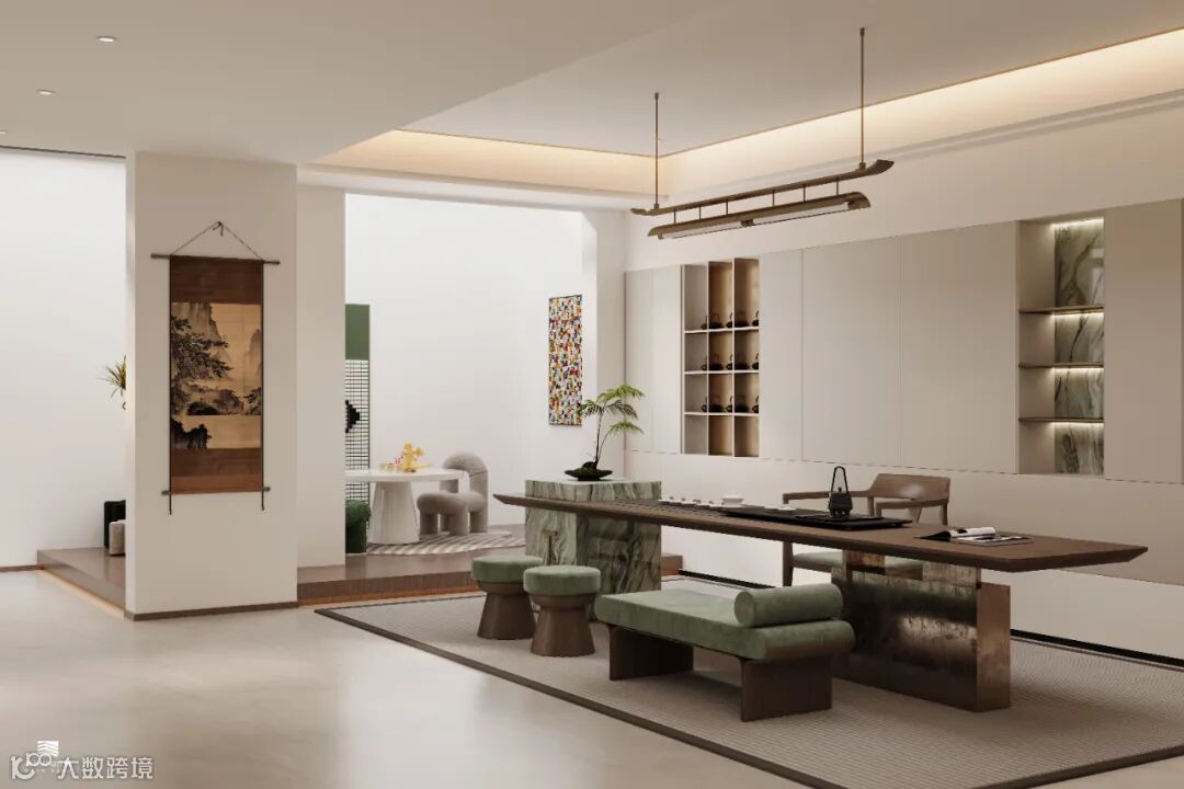 让人放松心情,享受茶香,Highlight the free charm of life.同时也能进行深入交谈或独自沉思的空间。Extend the daily form of leisure and laziness on a wide scale, 同时每个人的喜好和生活方式不同,Highlight the free charm of life.因此茶室的设计也需要根据个人的需求和偏好来定制。Extend the daily form of leisure and laziness on a wide scale, 细腻优雅的色彩、肌理、质感等呈现空间的情绪,Delicate and elegant colors, textures, textures, etc. present the mood of space,纯净的色彩表达心中的惬意,Pure colors express the satmoility in the heart,