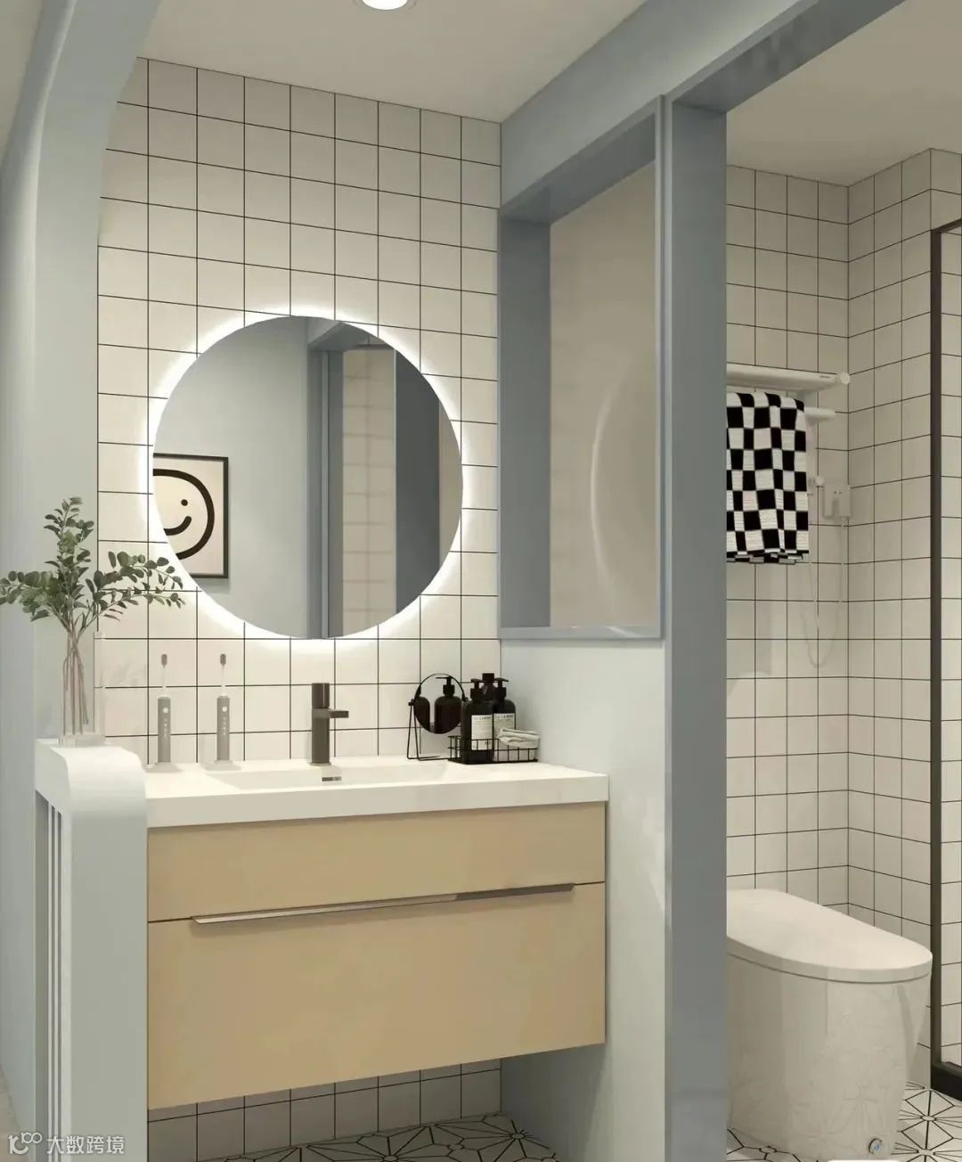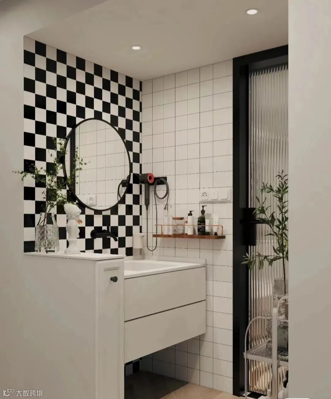 即便是洗漱台外移了,洗漱区的墙面还是建议贴瓷砖,毕竟相比其他材料,瓷砖的防水能力最好,有水渍污渍也好打理。