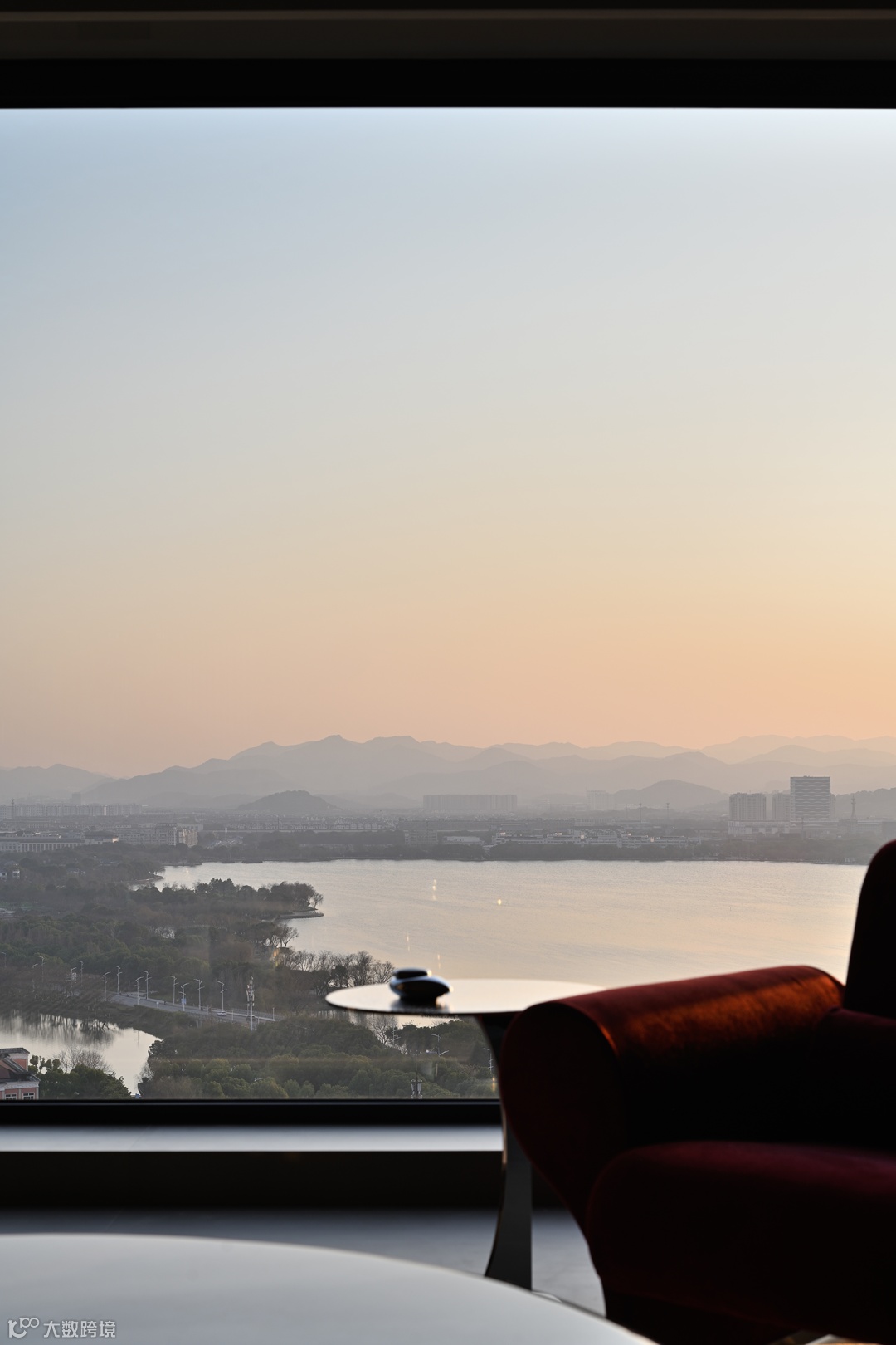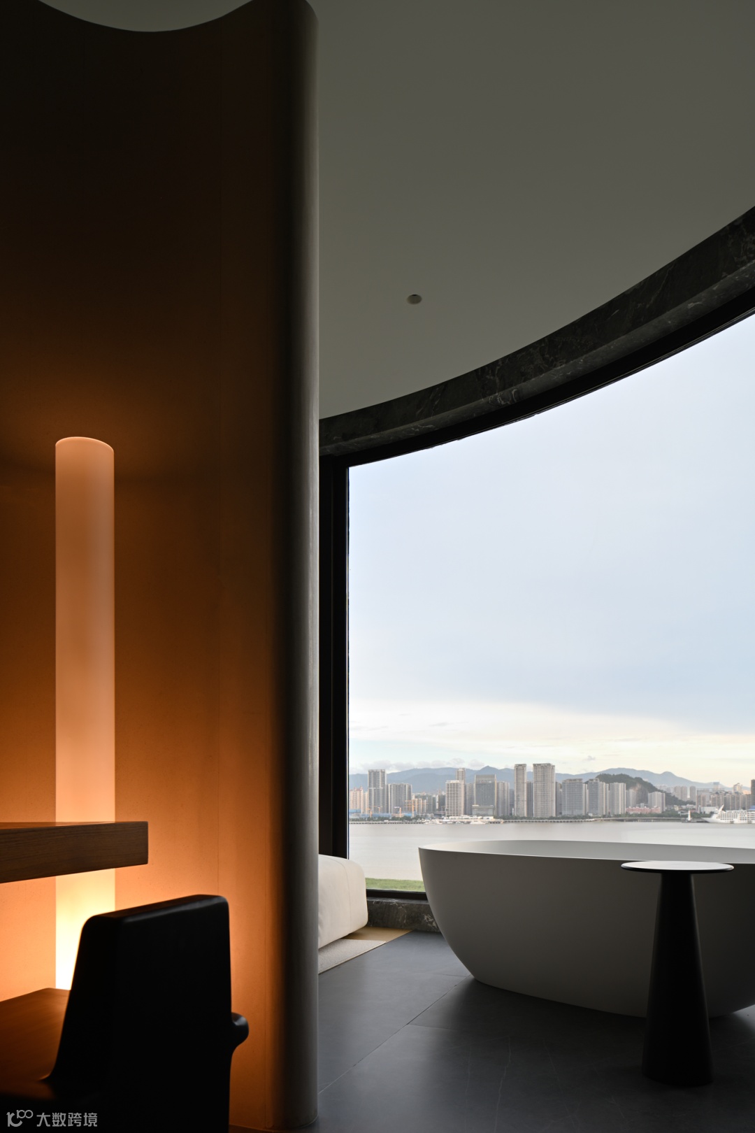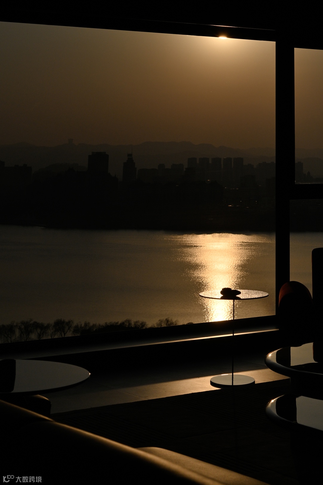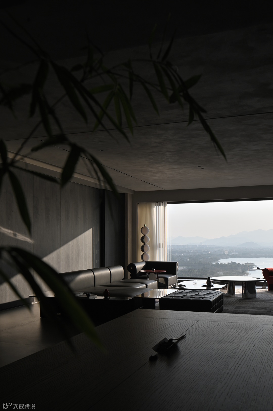 而至于城市的边界感,则来自于围绕整个空间的江水与山林。远处林立的高楼,蔚蓝的湖面,层起的山川与一望无际的天空……一日中最寂静的时刻,你于窗前落座,这山水也好,这都市也罢,早已融为一体。
