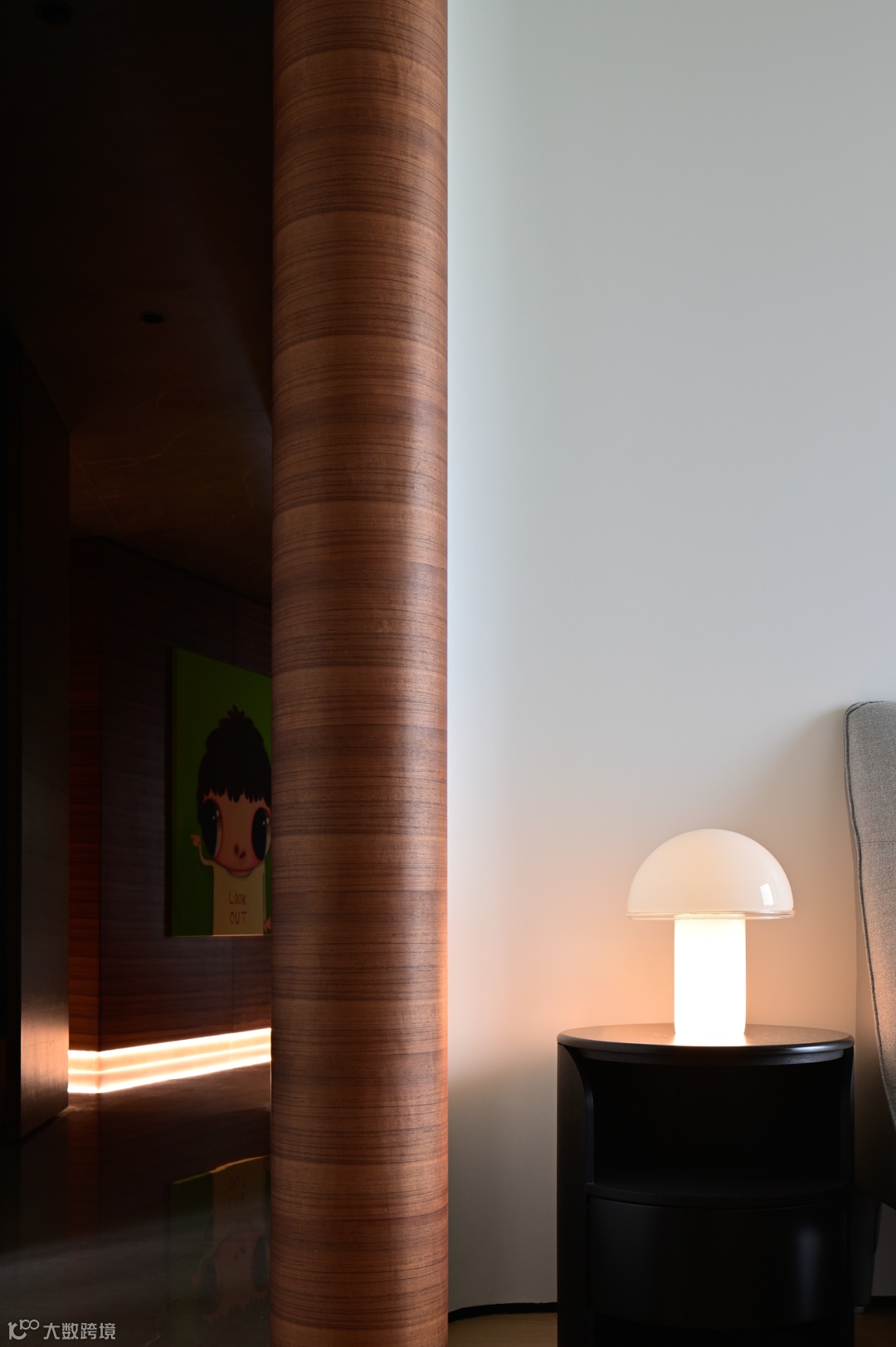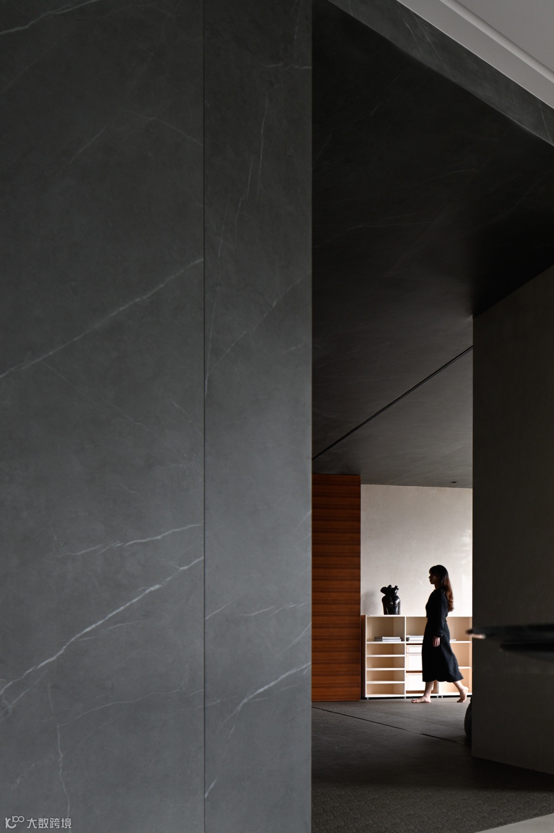 由客厅内行的廊道,通向私密的寝居空间,木与岩石的相互碰撞,寻求一个冷暖的平衡。