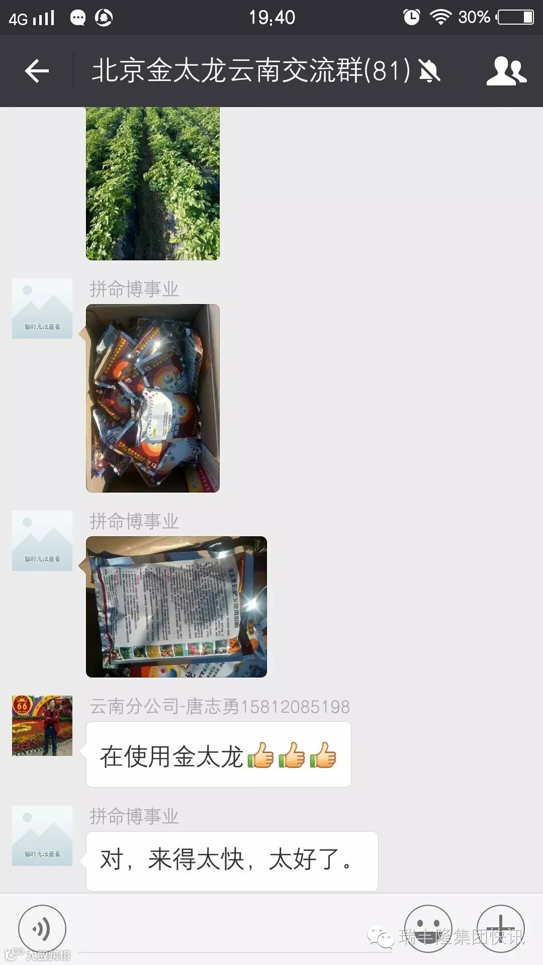 瑞丰隆集团快讯一直以来,市场上的土豆都是越大越热销,因为大土豆卖相较好,料理起来也方便。金太龙云南市场昨日传回图,当地用户使用金太龙超浓缩液体肥,满怀希望土豆大丰收!因为使用金太龙后,用户反映:效果可说是又快又好!自己意料之外,完全想不到!看目前这土豆苗的长势,继续用金太龙3次,丰收是肯定啦!希望自己地里的土豆用了金太龙,也能种土豆得大土豆!