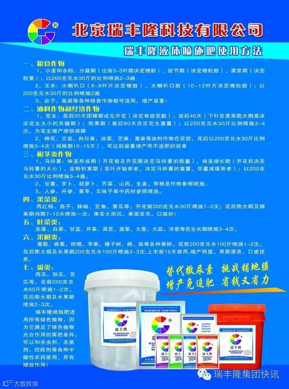 膨果期多运用瑞丰隆液体复合肥可加快根系的代谢功率,提高肥料吸收运用。同时,可以调节根系酶活性,推进细胞分裂,加快根系成长,有效补充农作物能量。同时,还能增加土壤孔隙度,改善土壤团粒结构,疏松土壤,保证根系成长活力。由于等离子化过程中发生的活性成分可直接参加果树代谢,提高代谢功率,促进新根萌生,平衡作物成长,促进花芽分化,提高结果率,增加果实内可溶性物质含量,改善上色等,是生产优秀农产品的优秀肥源。
