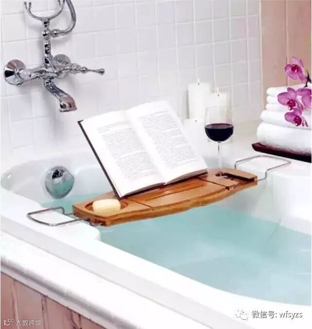 泡澡也要悠闲自得,来杯红酒看看书
