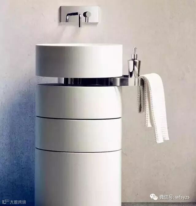简约洗手盆,将一个圆柱体进行了切割增添了置物功能