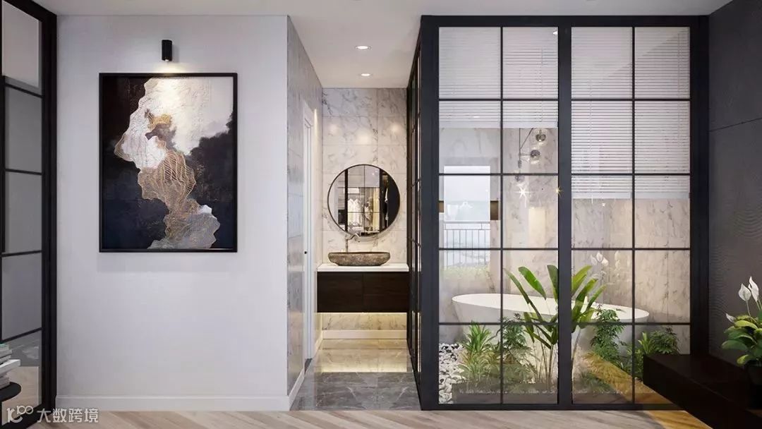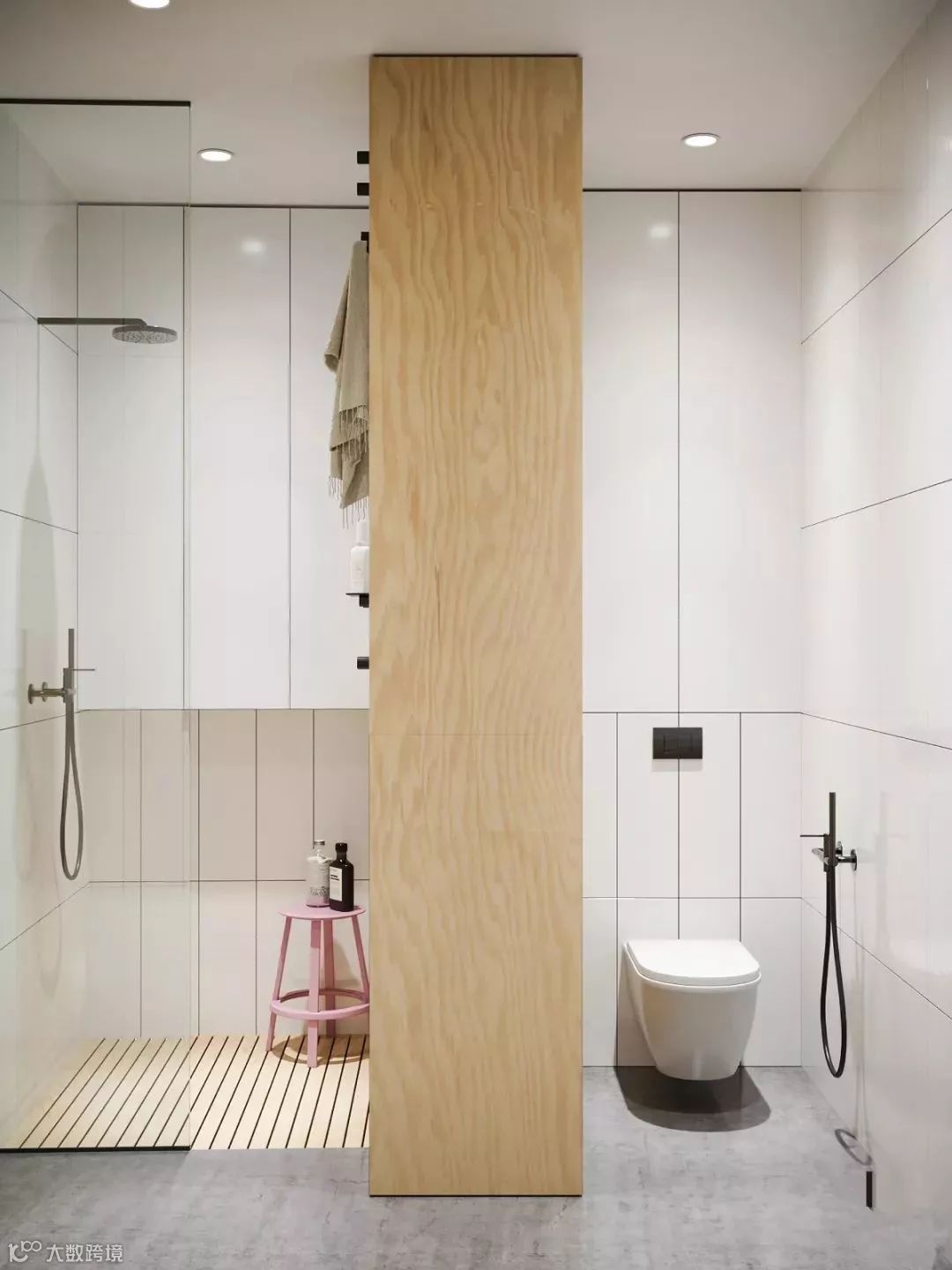 再者,利用纯白色等可以提亮的瓷砖,加上通透的玻璃隔断设计,都能很好地解决这一问题,从视觉上改善光线不足的缺点。