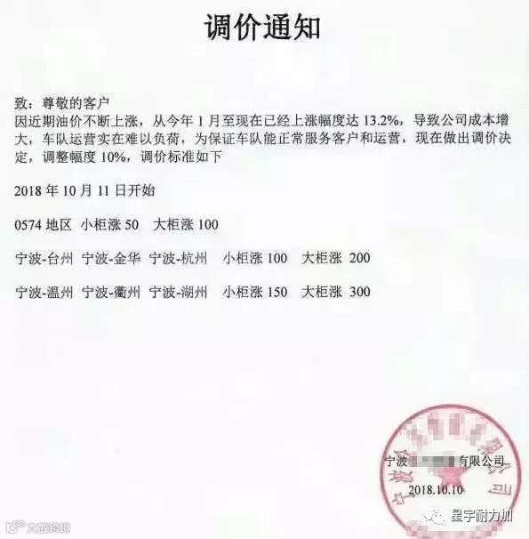 导语:10月19日24时,国内零售油价时隔五年后再次进入“8元时代”,物流运费随之上调,多家车队货运公司发布运价调整函,在当前运价基础上上调10%。运价上调10%,抓狂的还有原纸厂和纸板、纸箱厂!