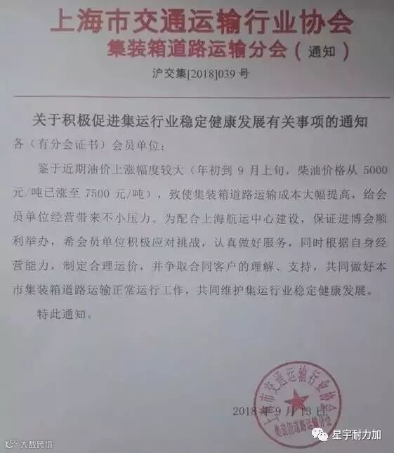 多家车队货运公司也率先发出运价调整商议函,具体调整幅度在当前运价基础上上调10%。
