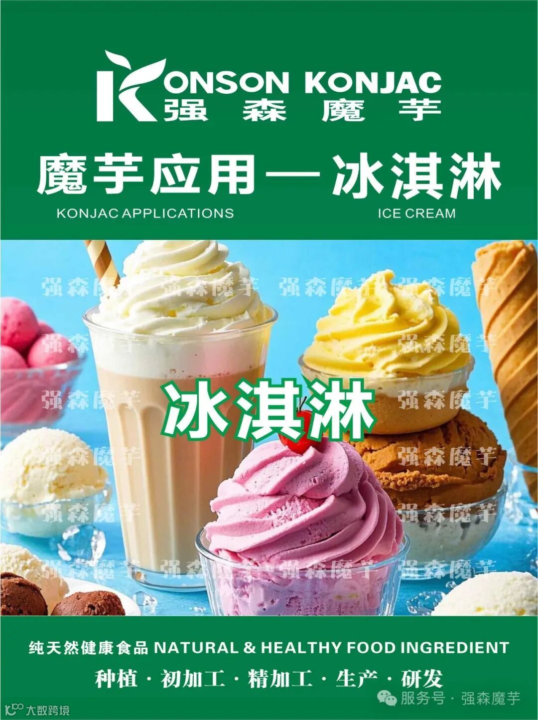 增加营养价值:魔芋粉富含膳食纤维,将其应用于冰淇淋中,可增加产品的膳食纤维含量,使冰淇淋在满足消费者口感需求的同时,具有一定的健康价值,符合现代消费者对营养健康食品的追求。