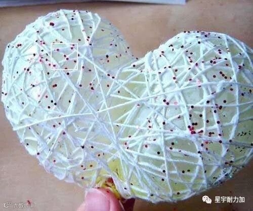(第2、3步时,也可以调整一下:先把线在白胶中浸泡均匀,然后再绕到气球上)