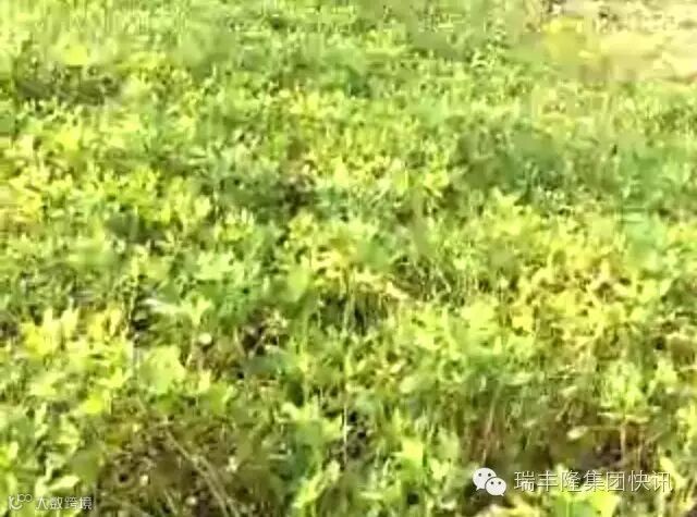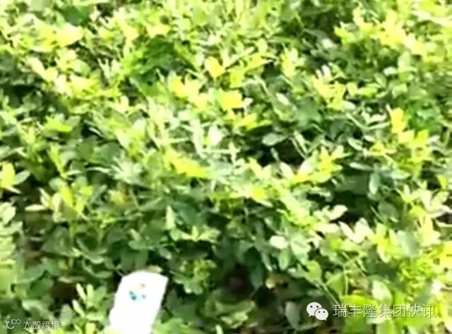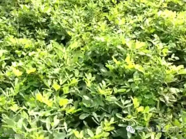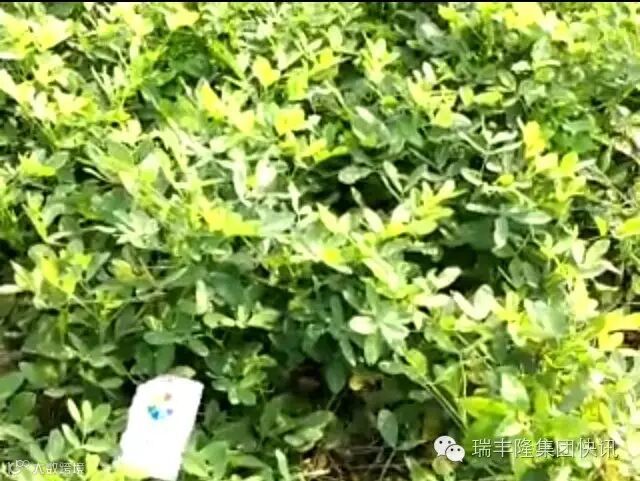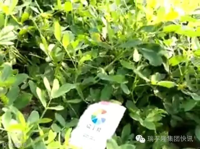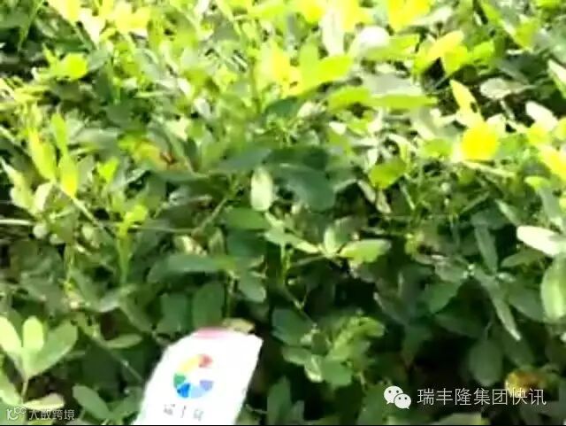 瑞丰隆集团快讯花生是独有的地上开花、地下结果的植物,因此对根部的肥料要求就很高。湖北荆门市场部李贤超经理根据花生的生长周期特性,使用了2遍瑞丰隆超浓缩液体喷施肥,对比效果大大不同。可以看出使用了瑞丰隆的花生枝叶青绿,果大饱满,平均每株挂有双仁果25个左右。当地种植户表示:这说明瑞丰隆喷施肥含量足、营养元素全、利用率高,确实是好肥料!