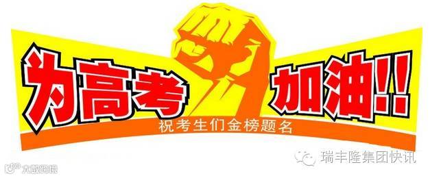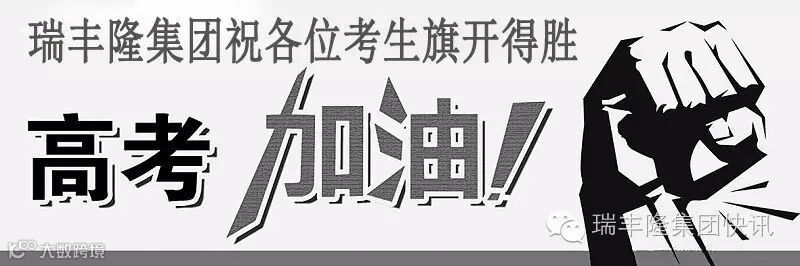 今天是高考的第一天,瑞丰隆集团全体员工祝愿天下考生旗开得胜,轻松应考。考入自己梦寐以求的大学!新的人生即将起航,高考就是一场修行,祝愿全国940万考生高考顺利,完美填写好人生试卷,加油!