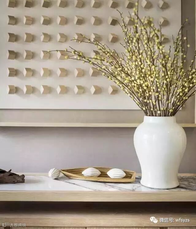 淡雅的背景中跳跃着明丽的色彩,优雅中透着几许活力。黑与白的泼墨晕染了整个空间的文化。