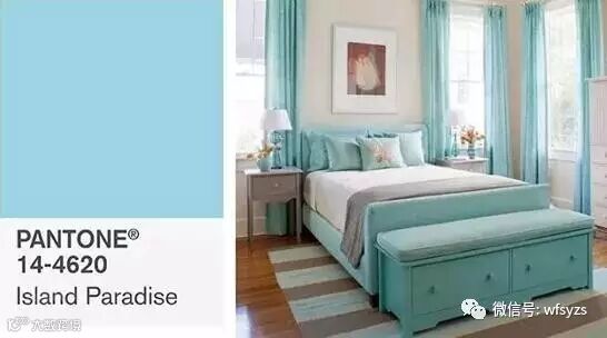 天堂岛是一个令人耳目一新的水嫩色调,被用来转换情境。清凉的蓝绿色韵,充份说明我们成功脱逃的伟大梦想,天堂岛是象征性的热带场域和我们放松身心的渴望。猜得到这颜色的灵感是源自于海洋中的岛屿,感觉相当梦幻,不管是穿起这个颜色去度假还是窝在点点海蓝的小家中,都是相当 relax。