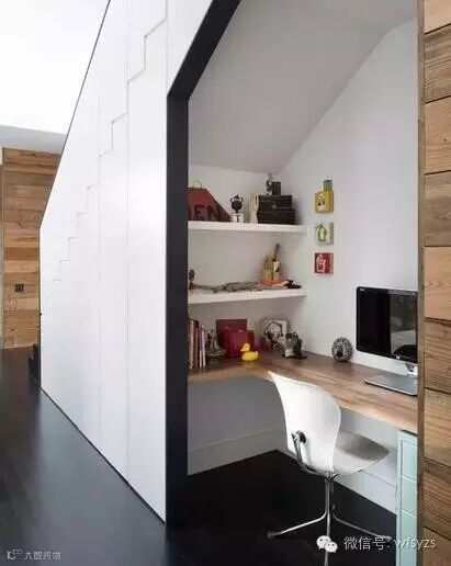 如果没有设计独立书房的空间或者是除了独立书房,还希望有一些更便捷的学习空间,这些方式是值得借鉴的。比如借用飘窗、阳台、楼梯拐角或者卧室的一个角落,总之,家里一定要留出这块区域。