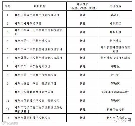 值得注意的是,郑州市多所学校也都有新建校区计划。其中,包括郑州市第四中学高中部新校区项目、郑州市第四十七中学高中部东校区项目、郑州市第一中学航空港校区项目、郑州市回民中学航空港区新校区项目、郑州市外国语学校航空港区新校区项目,以及郑州市第一中学陇海路校区项目等。