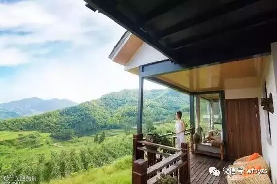 18栋德式乡村风格的房屋,沿着山边悬空而起,背靠巍巍青山,前望碧绿山谷,层层梯田尽收眼底。