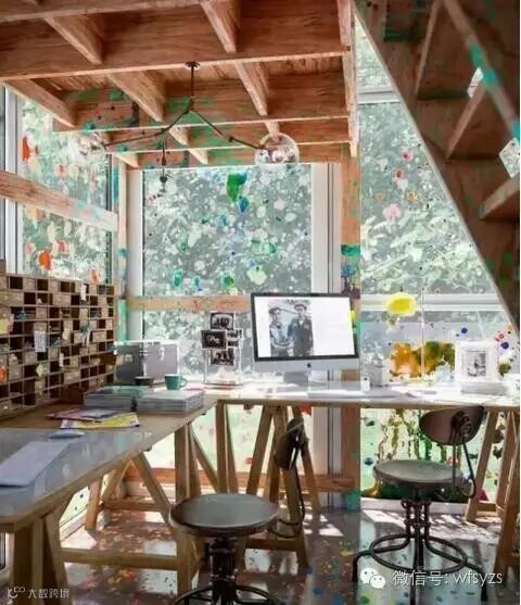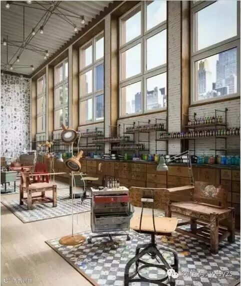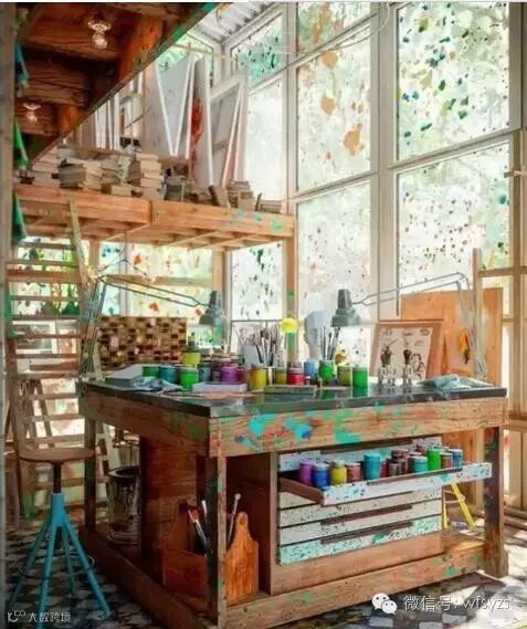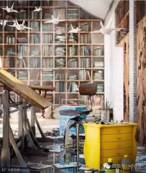 它效果图!它表达的是一个近乎疯狂的艺术家工作室,其表现技术