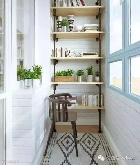如果你一直都想拥有一个书房,但是家里面积又不够大,那就移步阳台吧,在这里,看书成为一件最惬意的事。风声、鸟鸣,都是意外的惊喜。
