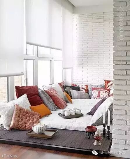 休息室嘛,自然怎么舒服怎么来。可以把沙发搬过去一个,甚至直接在地上摊一层被褥,堆满软软的垫子,或躺或坐,不能更美啦~