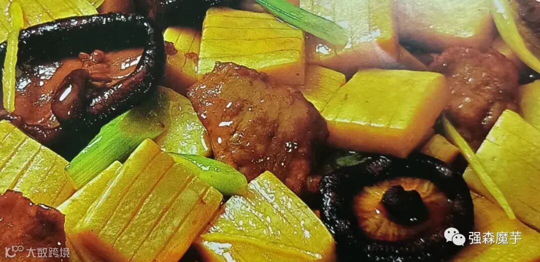 魔芋豆腐300克,水发香菇150克,瘦肉100克。