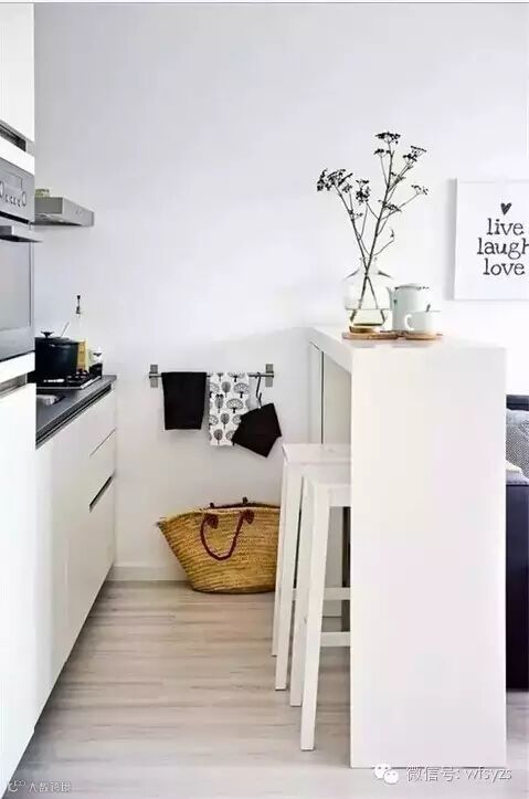 在家中放置一个吧台,能当餐桌有能将客厅和厨房的区域分开,小户型非常实用。