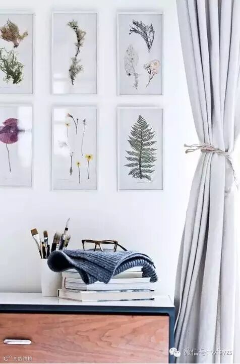 用植物当作房间中的装饰再好不过,不擅长养花的人可以将植物叶装进玻璃相框里,比买来的装饰画更好看。