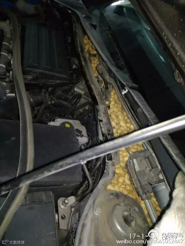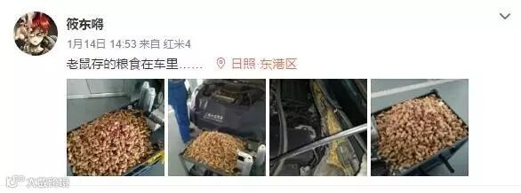 最近,微博用户@筱东嘚 在修理汽车的时候,发现了一个令人难以接受,甚至还有点恶心的事实,车里的发动机舱俨然成为了老鼠们存粮食的仓库!