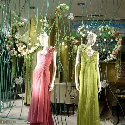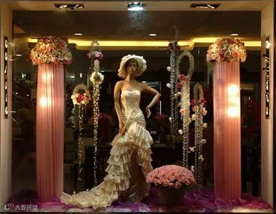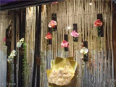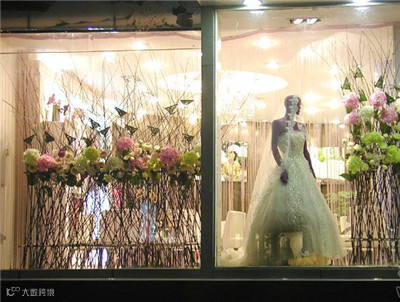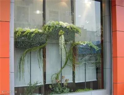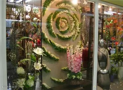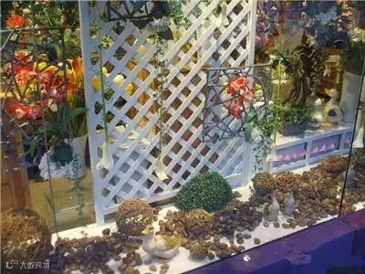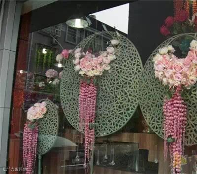 美美的橱窗花艺设计,让安静的橱窗突然灵动无比,让人有想要购买的欲望。