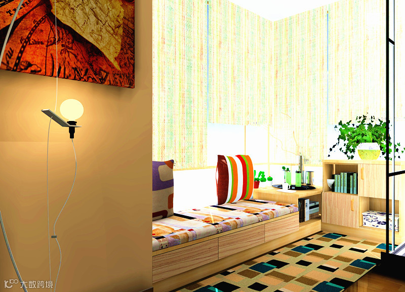 飘窗处做一个小型的榻榻米,闲暇时光坐在窗台看车水马龙,云卷云舒。
