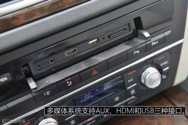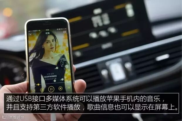 前排带有USB、HDMI和AUX接口,理论上可以大大方便连接外置媒体设备。我分别体验了苹果系统和安卓系统的两款手机,通过USB线连接苹果手机后系统便马上识别手机,可以播放手机内及第三方软件所保存的音频文件。