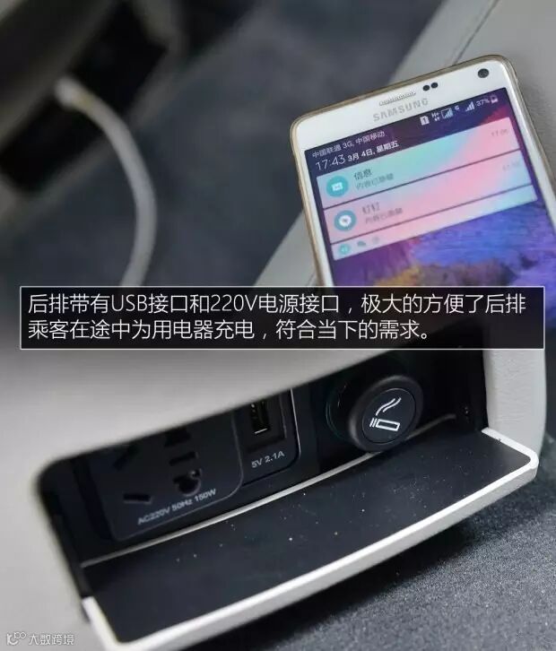 后排带有220V电源接口,这为日常的用车提供了极大方便,可以兼容任何用电设备,只要功率在150W之内。同时后排还提供了USB接口和点烟器,适合当下的用车环境,后排乘客可以尽情的使用移动电子设备。后排乘客具有调节空调的权利,起初我以为后排是独立温区控制,实际并不是,后排乘客若进行空调调节,则整车空调都会发生变化。