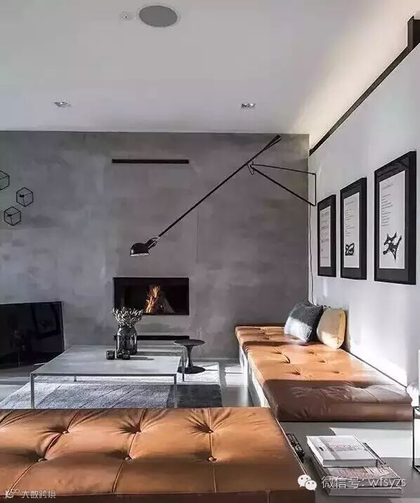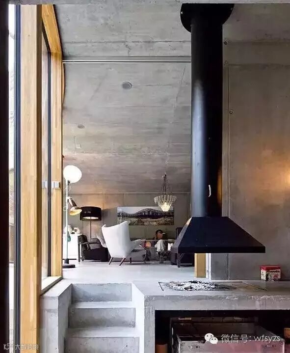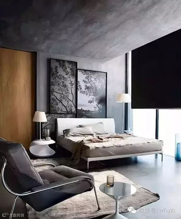 水泥墙有时就能搭配出这么大气的效果,尤其放在大空间里。