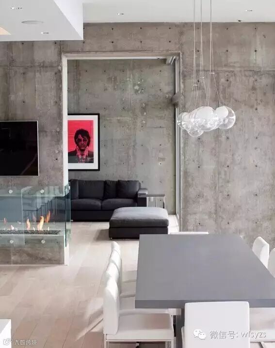 凭什么同样是水泥墙,我家的叫毛坯房,人家的叫豪宅呢?或许,问题出在了视觉效果上。水泥墙冰冷的质感很适合大空间或是开放空间使用,不信你看下面的设计。