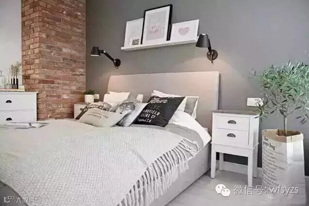 同样的水泥墙壁,这个空间选择了白色和灰色这一经典颜色的搭配,白色床增加了视觉延伸感,打破了灰色的单调,丰富了空间层次。