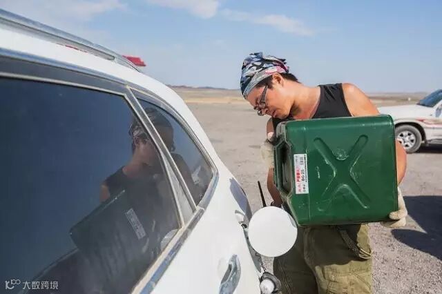 离开南湖大峡谷,重回哈罗公路的途中,找了一个休息站,给一行的车加油和打气。