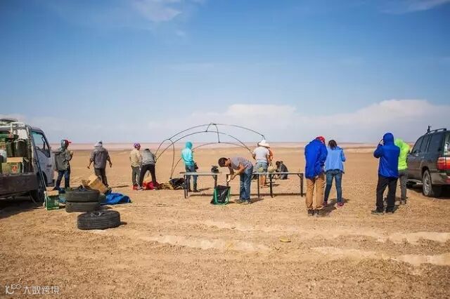 下午3点多我们到达了第一天的营地—南湖沙漠,这里周围几百公里都是荒漠和戈壁风光,沙质地面,风很小,非常适合扎帐篷露营。