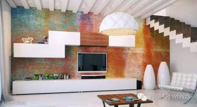 用油漆、艺术喷涂做电视背景,成本低,而且想要的任何颜色都可实现。不过用油漆、艺术喷涂做电视背景墙要特别注意的是,在色彩的搭配上一定要与客厅风格相协调。