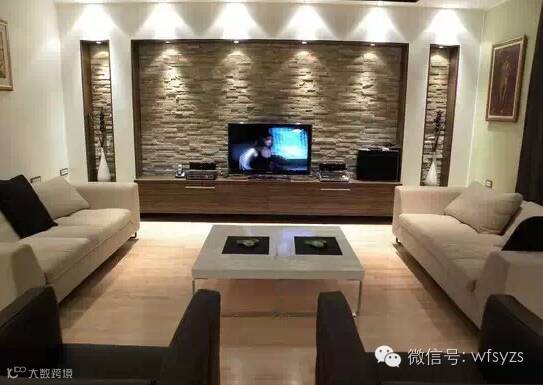 目前市面开始流行起一种仿石材的瓷砖,这种瓷砖不是用来铺地的,而是用来做电视背景墙的。用瓷砖做电视背景墙是从去年开始流行起来的,容易打理又美观。