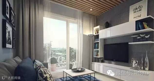 不同的吊柜组成一面电视墙,美观又实用哦。