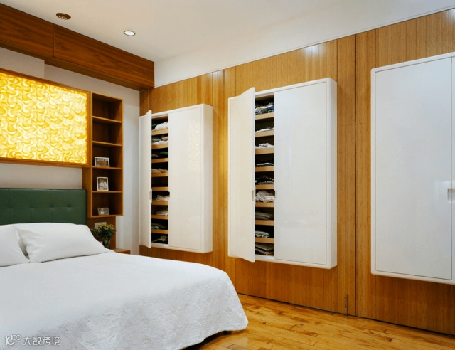 不是每一间卧室都有空间放大衣柜的,那些衣帽间的梦,有时在梦里出现过。地板上堆满了装满衣服的箱子,毫无设计可言。重新构想下自己的卧室吧,墙壁上小小的衣柜,天花上挂衣服的绳子,其实都可以解决空间不足的问题。
