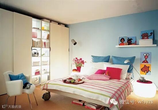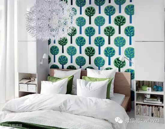 床头主题墙处选择壁纸时,尽量选择故事性的壁纸,或者是自然元素的,会更有趣。