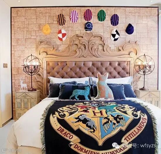 巴洛克式的床头造型一定会成为哈迷们的心头好,借助一条霍格沃茨魔法学院的“魔毯”,英伦、古典的风格在转瞬之间拥有了魔幻能量。