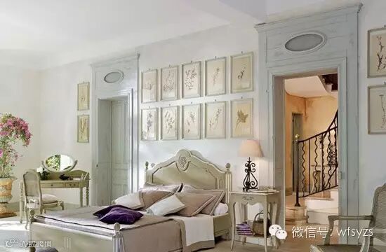 睡床的床头背景墙就是可以好好布置和利用的地方。紧密布置上规整的装饰画等物件,让此处小景即刻成为抢眼而别具情调的细节空间。