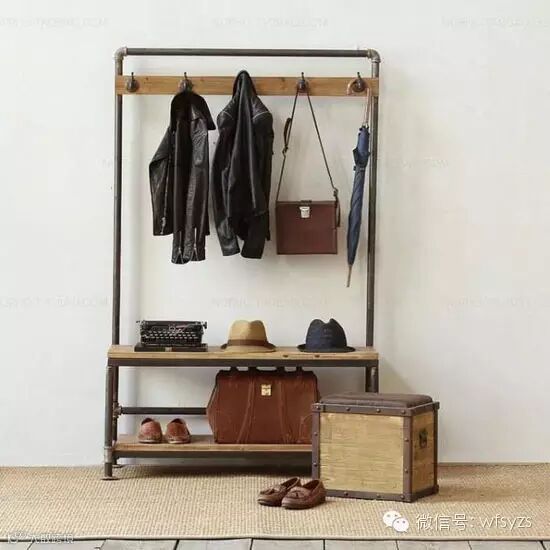 小编的话:美式工业风的衣架,以钢管为轮廓、木板为支撑,简洁利落的造型不仅外观美感十足,集衣帽架、鞋架于一体的功能也是不可小觑。