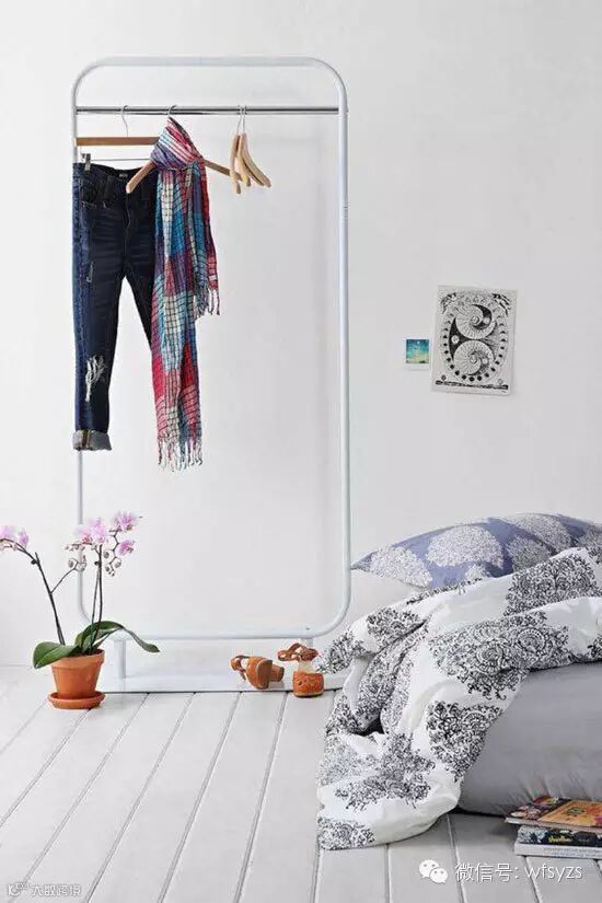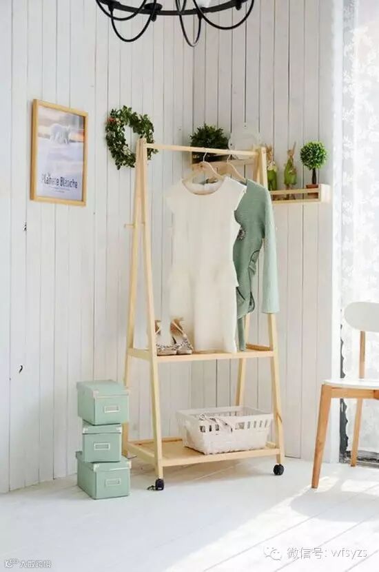 人们常说,女生房里的椅子都不是拿来坐的,而是拿来堆衣服的,因此只有进了女生的卧室,你就可以看到一张被衣服“压”的快要倒下的椅子。但是身为美美哒的女生,我们怎么能容忍自家的小窝出现这些乱的场面呢?因此赶快行动起来,在卧室里摆上一个衣架,好好置挂你的衣服吧。