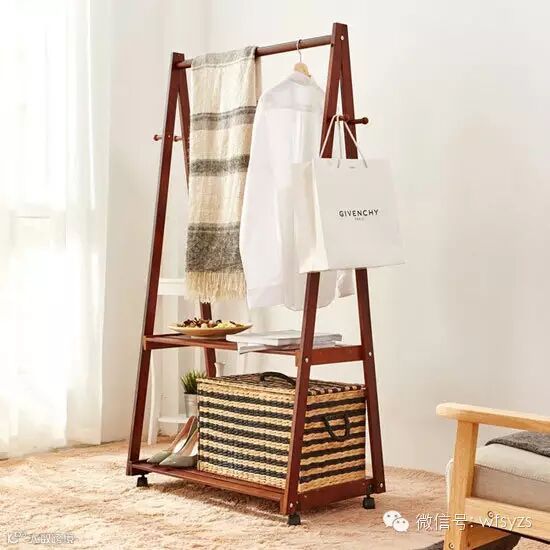 小编的话:采用A字型设计的木质衣架,拥有非常好的稳固性,同时其底部的滑轮设计也更方便移动,浅淡的原木色十分清新悦目。