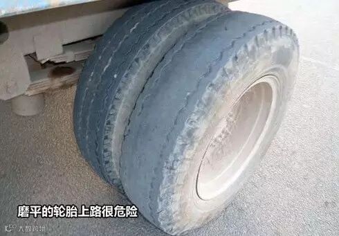 检查轮胎时发现轮胎花纹已经磨干磨平,说明轮胎的寿命已尽,必须更换。